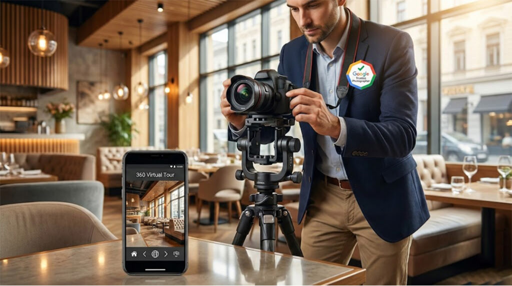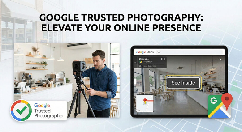 Google Trusted Photography is a service where a Google-approved photographer captures immersive 360-degree interior images of your business. These images are published on your Google Business Profile, allowing customers to explore your space virtually before visiting.